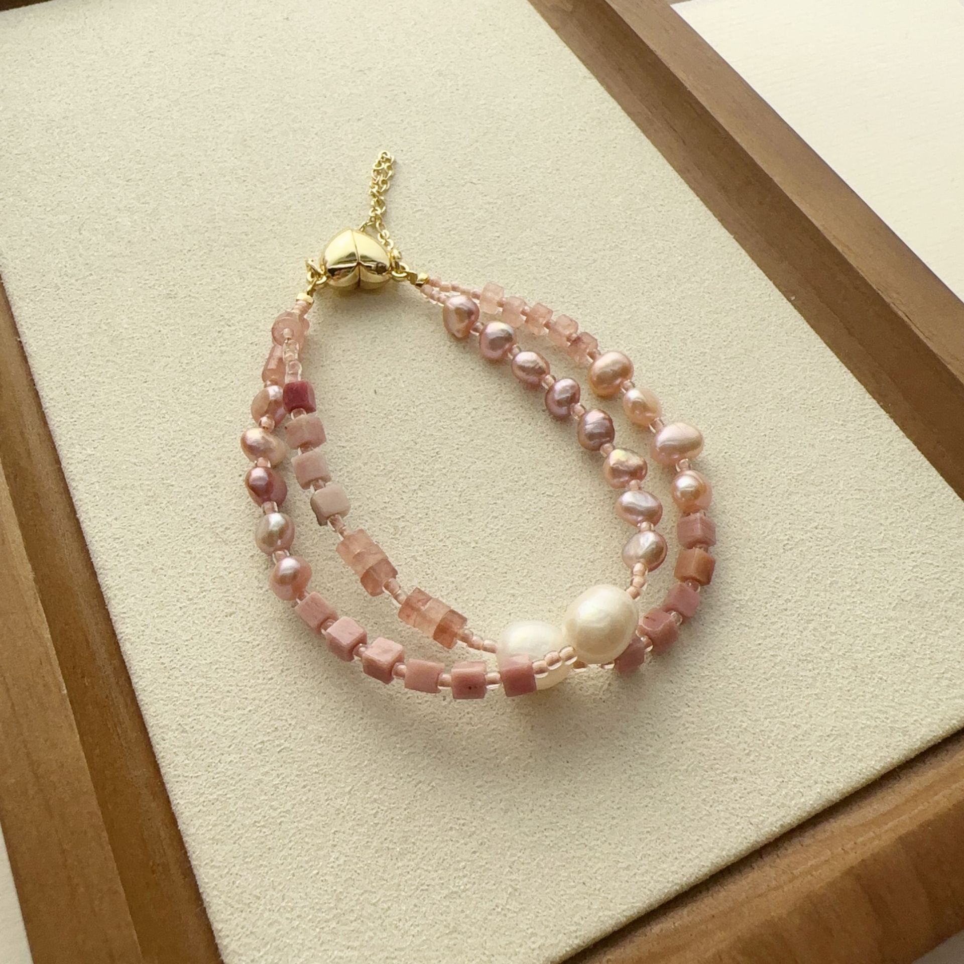製品はオリジナルのデザインで、写真はすべてこのスタジオで撮影されています。素材:日本から輸入されたメッキされたキビビーズ、レッドストーンストロベリークォーツ、淡水パ金属部分銅メッキ真金18 k保色希